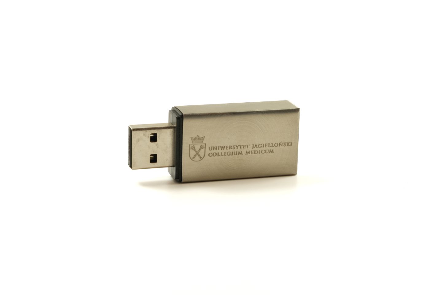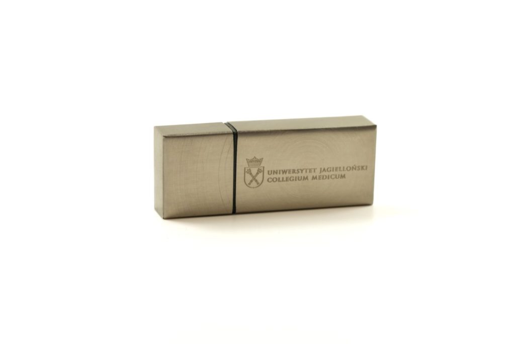 Pendrive 2.0 w eleganckiej metalowej obudowie, z wygrawerowanym logo.