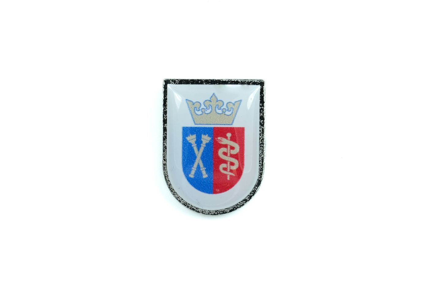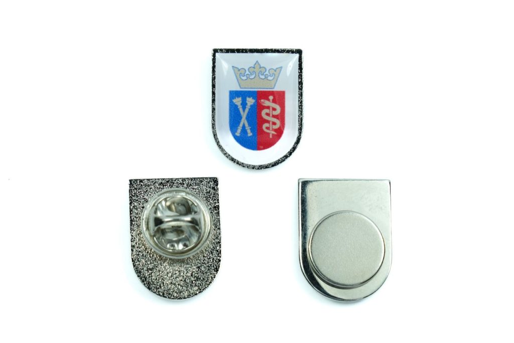Znaczek na bazie podkładu z metalu w kolorze srebrnym pokryty